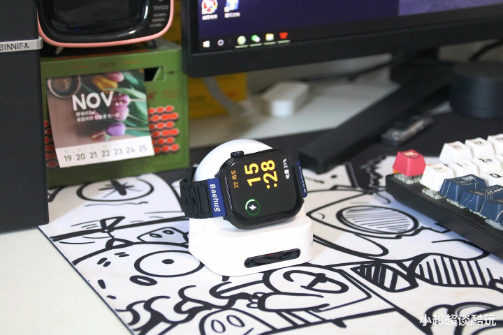 充电仓使用起来也非常方便,手表只需轻轻一放,就能进行无线充电;给备用电池充电时,直接把电池放入充电仓对应的位置就行 。而且,它还有小夜灯功能,在晚上光线较暗的时候,打开小夜灯,既能照明,又充满了温馨的氛围 。不管是放在宿舍的床头,还是家里的书桌上,都非常实用 。